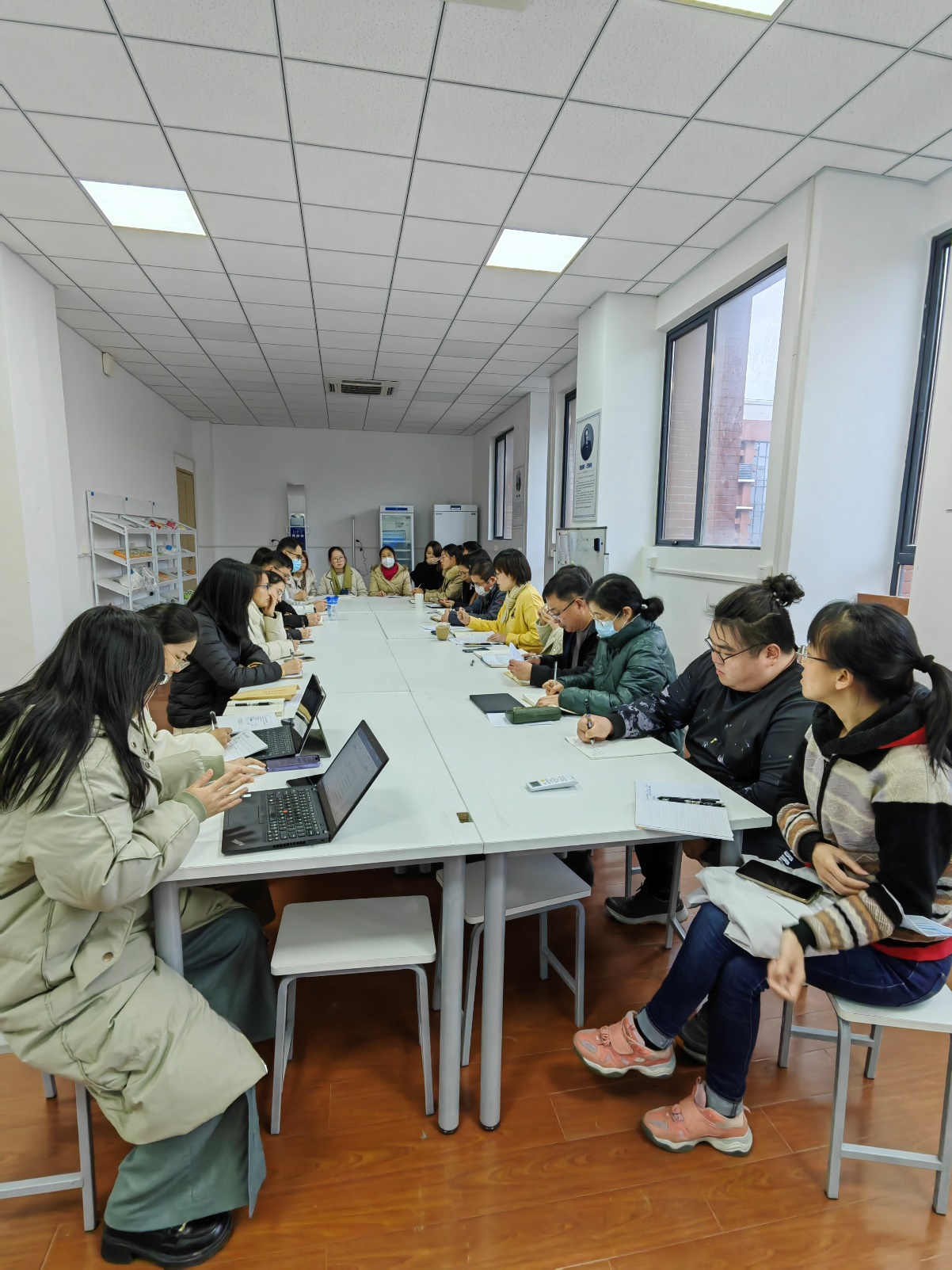 学院党总支书记顾斐雯带领教师们重温前期下发《习近平总书记关于师德师风的重要论述摘编》《新时代高校教师职业行为十项准则》《上海高校教师师德失范行为处理指导意见》等材料,并在会上对学院新学期学生工作进行部署,她重点强调了在疫情防控工作常态化新形势下,以第一届毕业生实习就业工作为重点,发动全院教师力量做好就业点联系和推荐工作,将对党的二十大精神的学习领悟真正落实到为学生办实事、解难题上去。那立欣副院长在会上重点强调开学第一课的教学准备工作。她表示学院要以打造高质量课堂为目标,精心设计,将思政元素融入专业课程,年轻教师多向有经验的前辈学习。2023年将迎来学校与专业的评估工作,任重道远。那院长分享了自己在教育教学、科研工作中的经验。接着,学院负责教学、学生、科研、实习、研究生管理等具体管理人员,对照2023年学院重点工作推进计划进行梳理,学院书记、院长统筹安排并逐项提出具体要求。