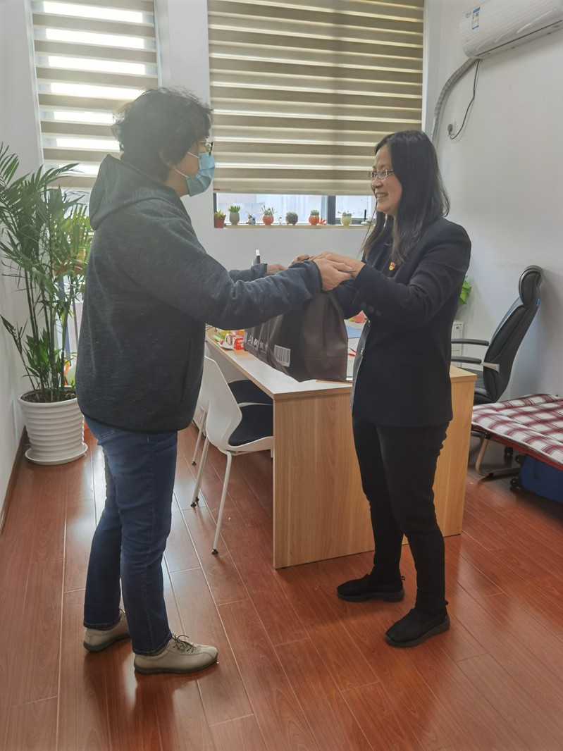 3月26日下午,新南苑综合办于莹副书记、办公室主任杜峥、工会李瑾老师赴健康与公共卫生学院看望慰问了在疫情防控一线值守的学院教师,表达了郭永瑾书记、吴韬校长等学校领导对学院教师的关心,并送上了慰问品。